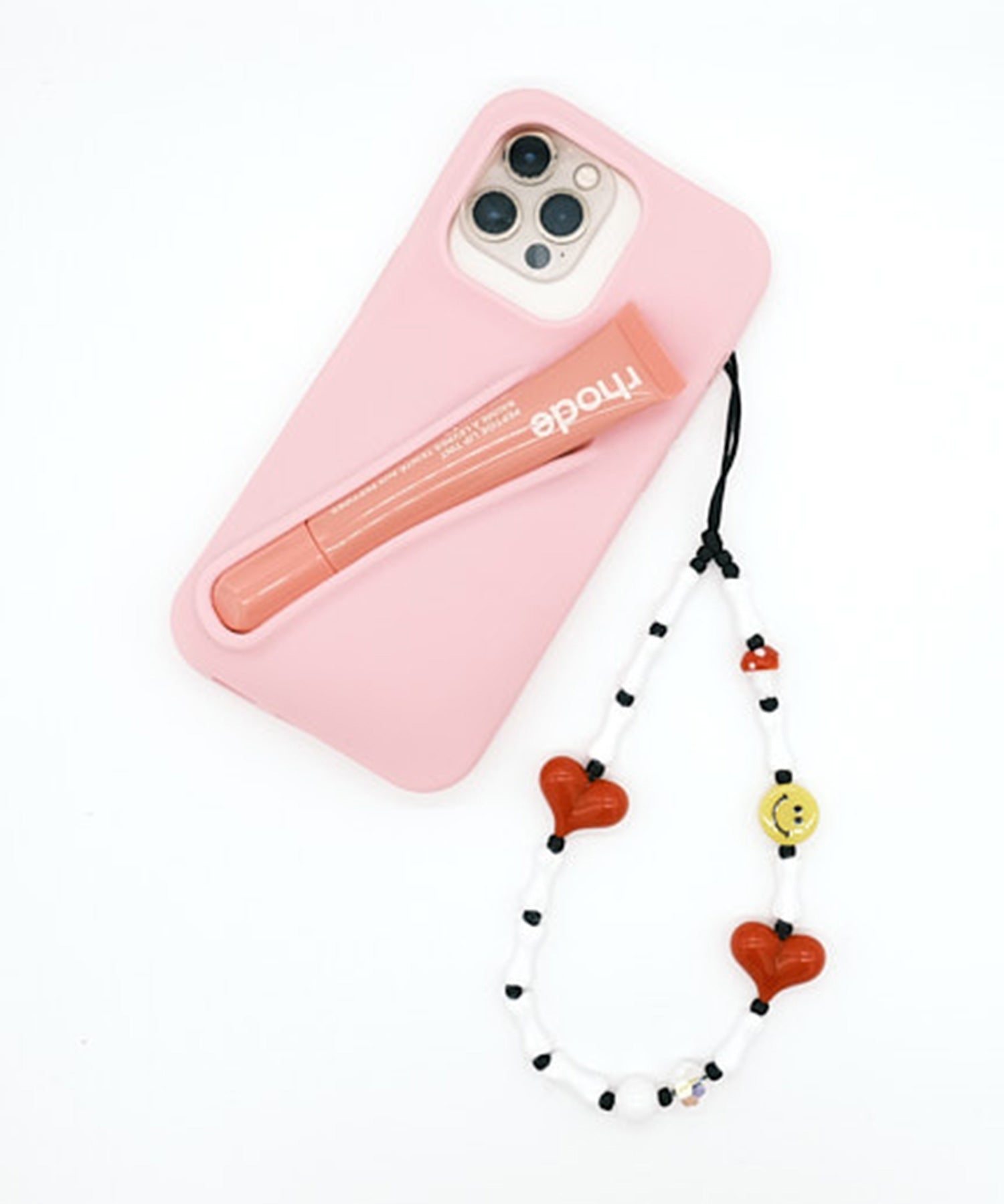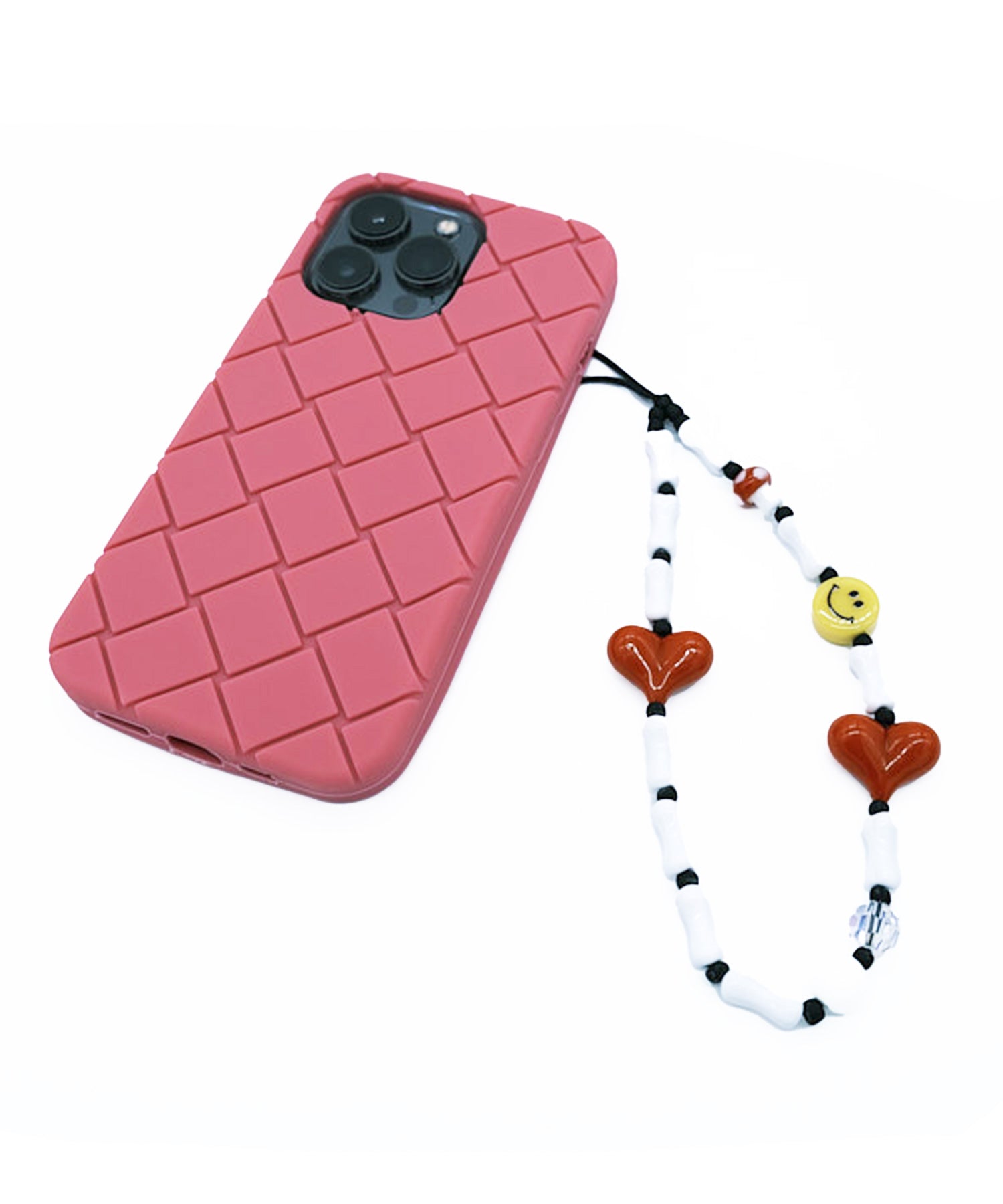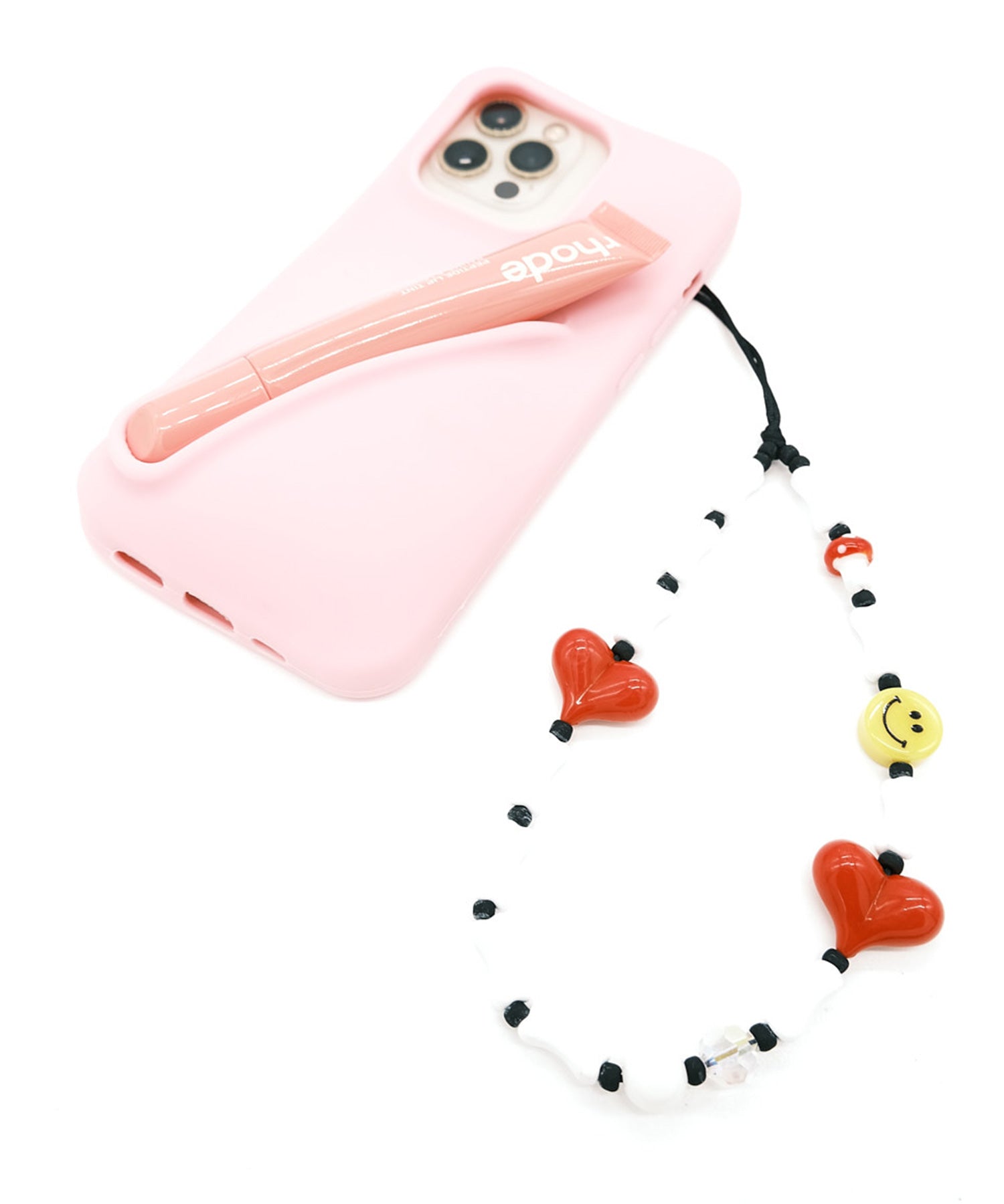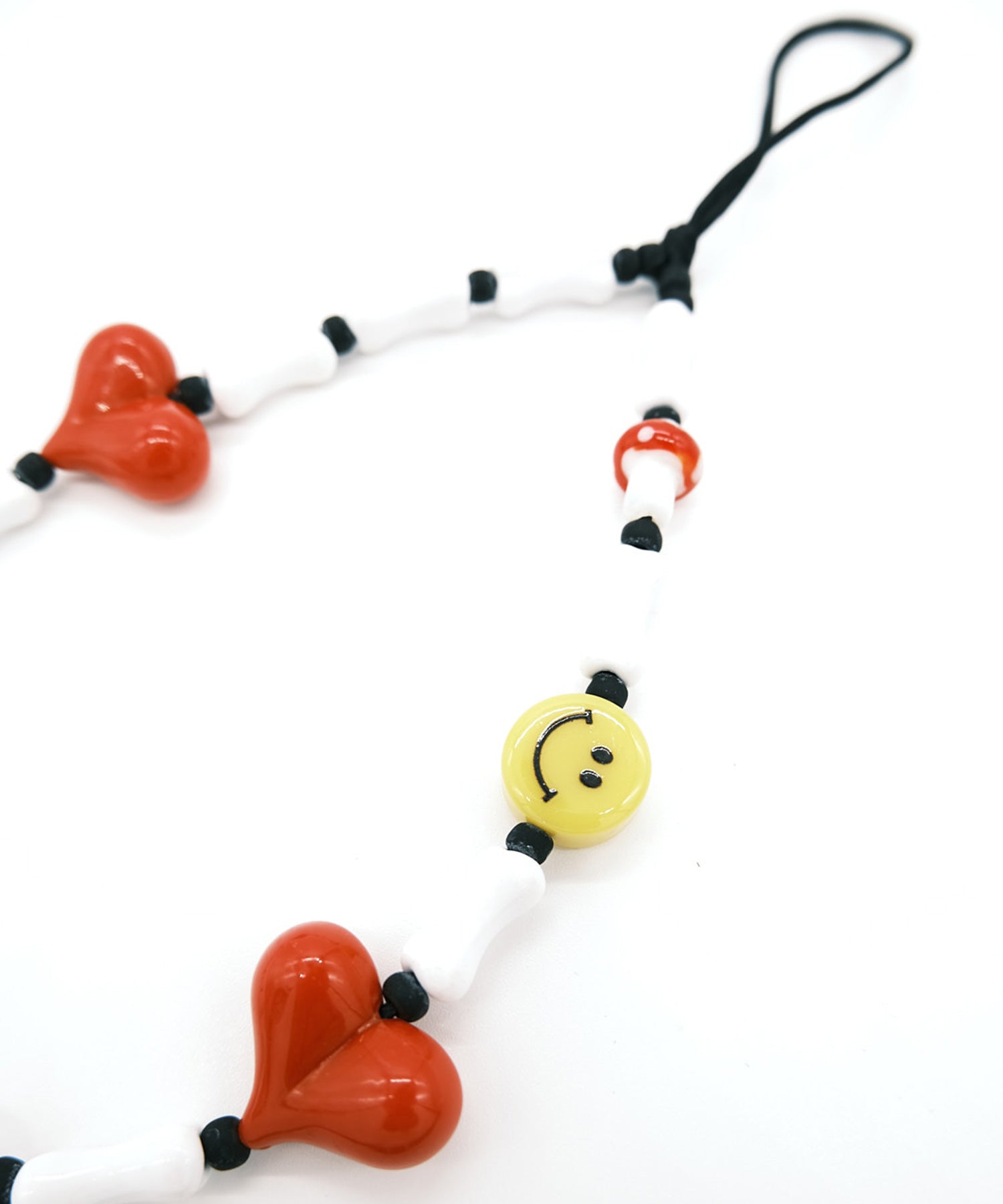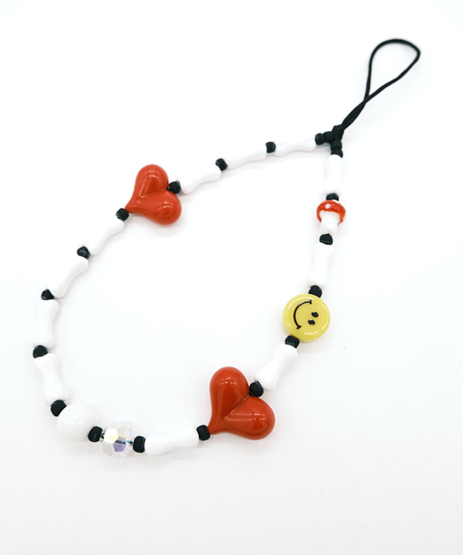Smile plate hurt phone strap/携帯ストラップ/スマホ(ホワイトxレッド)